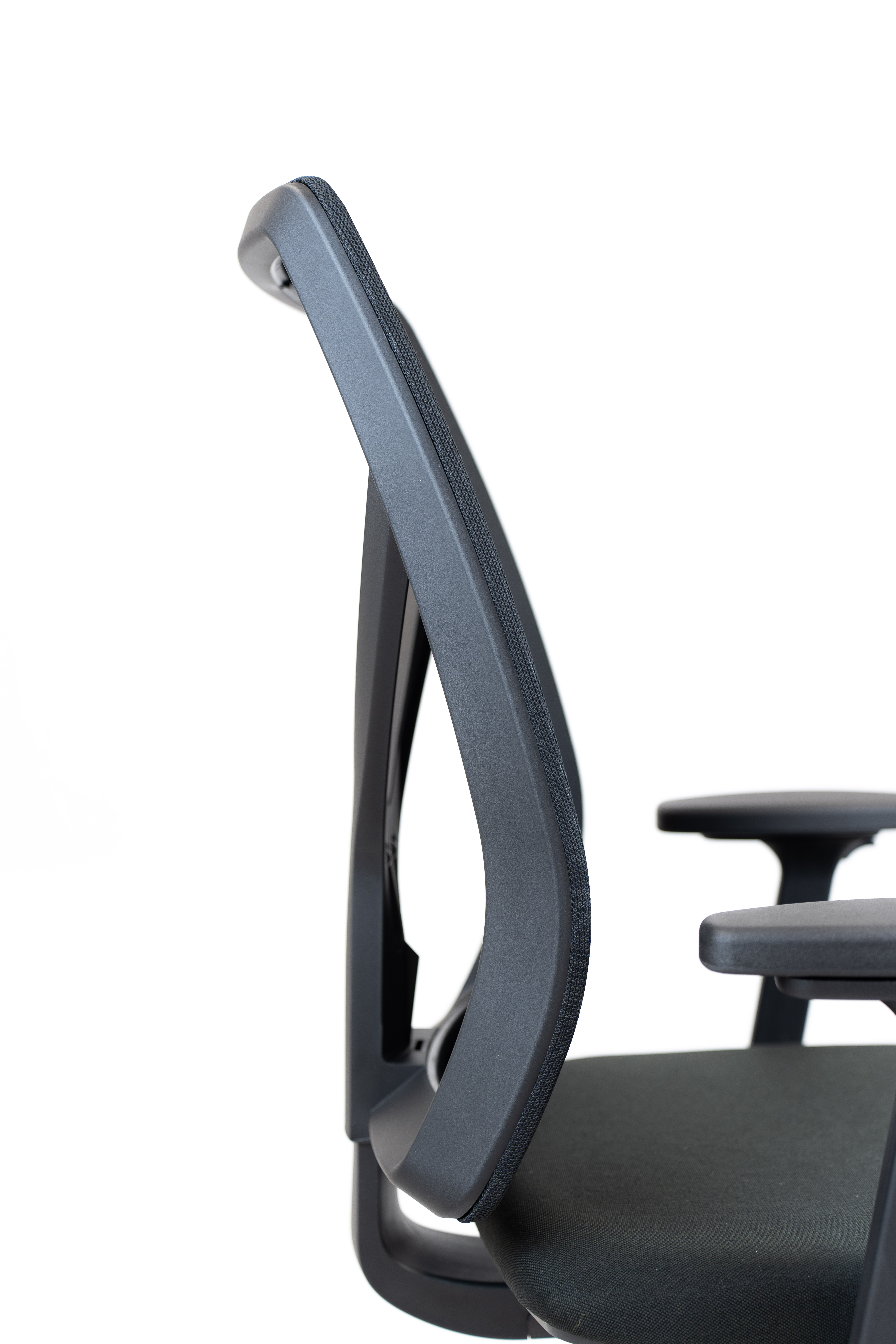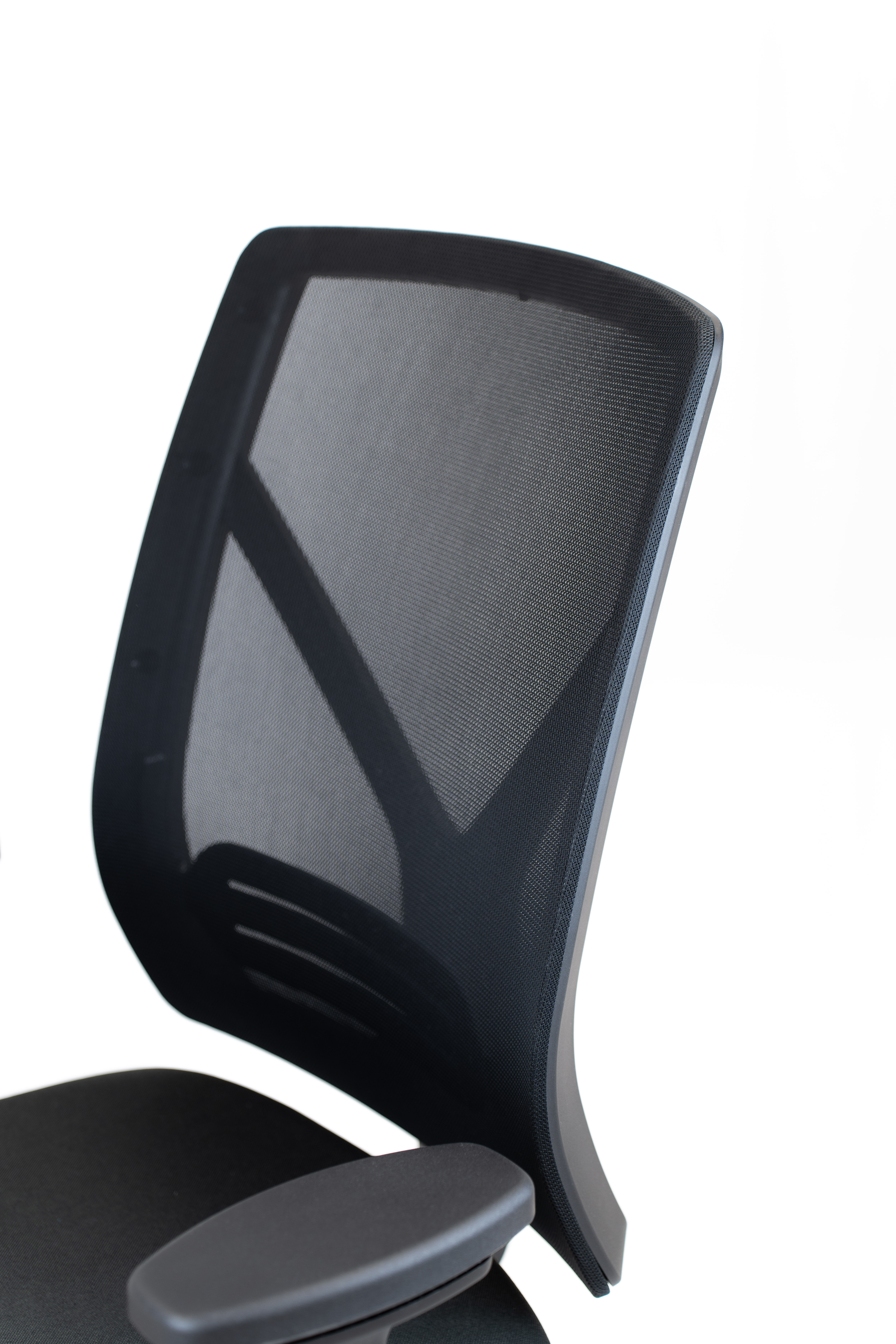 Injizierter Schaumstoffsitz (Prof 434*Breite 470 mm), langlebiger Komfort, Großpassgewebe, Netzrücken (586*471mm) einstellbare Höhe auf 7cm, mit Lendenstütze einstellbare Höhe.