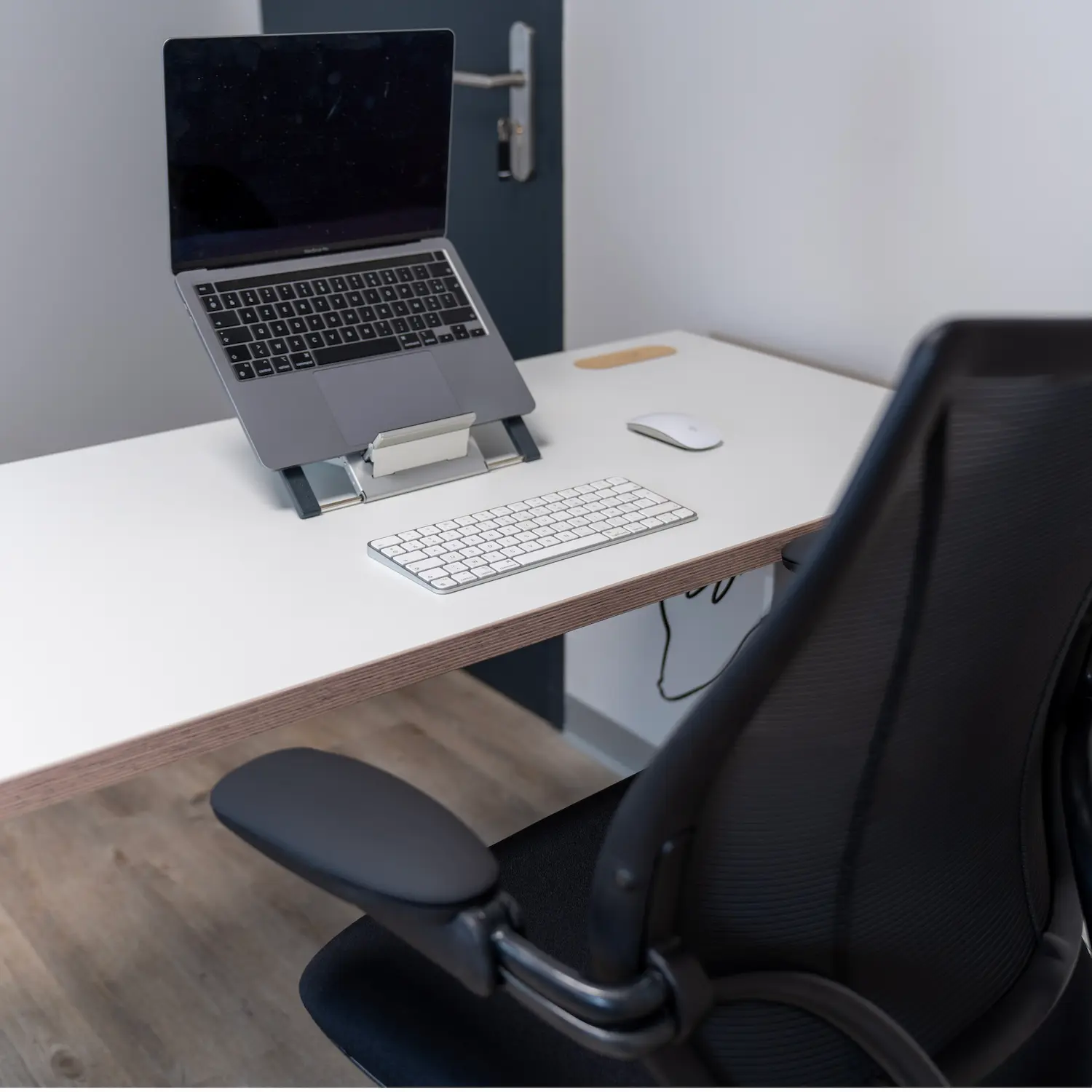 Met een in hoogte verstelbaar vast onderstel of een elektrisch onderstel is hij perfect geschikt voor zowel telewerken als individuele of gedeelde werkplekken.