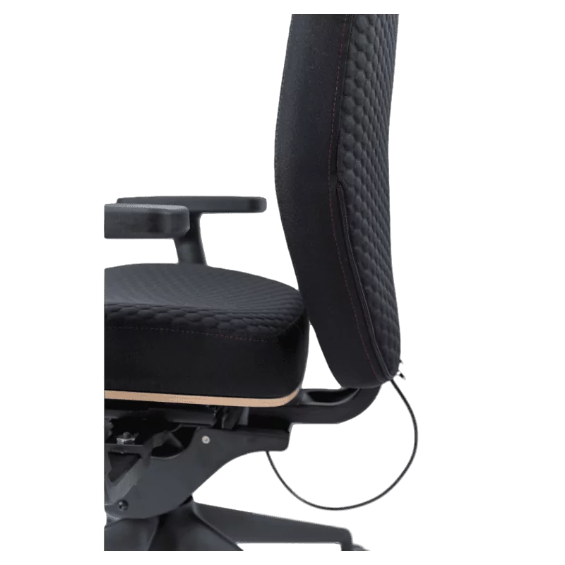 Seu assento consiste em uma espuma de alta densidade associada com uma almofada de memória de forma, garantindo o máximo conforto no tempo. Seu tecido capitulado é reciclado. Seu mecanismo ultradinâmico é projetado para uso H24. Seu encosto é inclinado em 2 eixos.