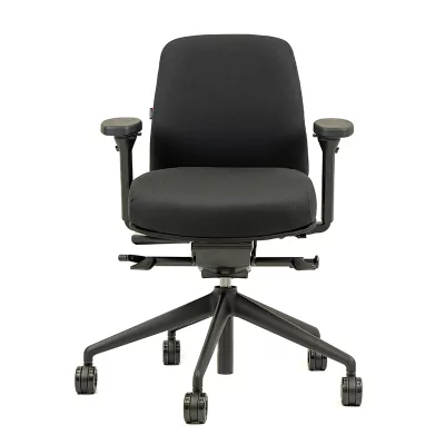 Apoios de braços: Ajustáveis 4D, inclinação de 12° / Material de nylon. Largura: 39,5 a 51,5 cm.