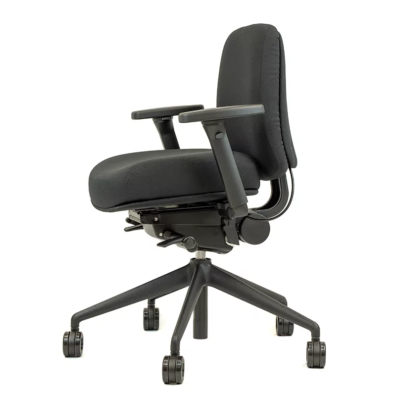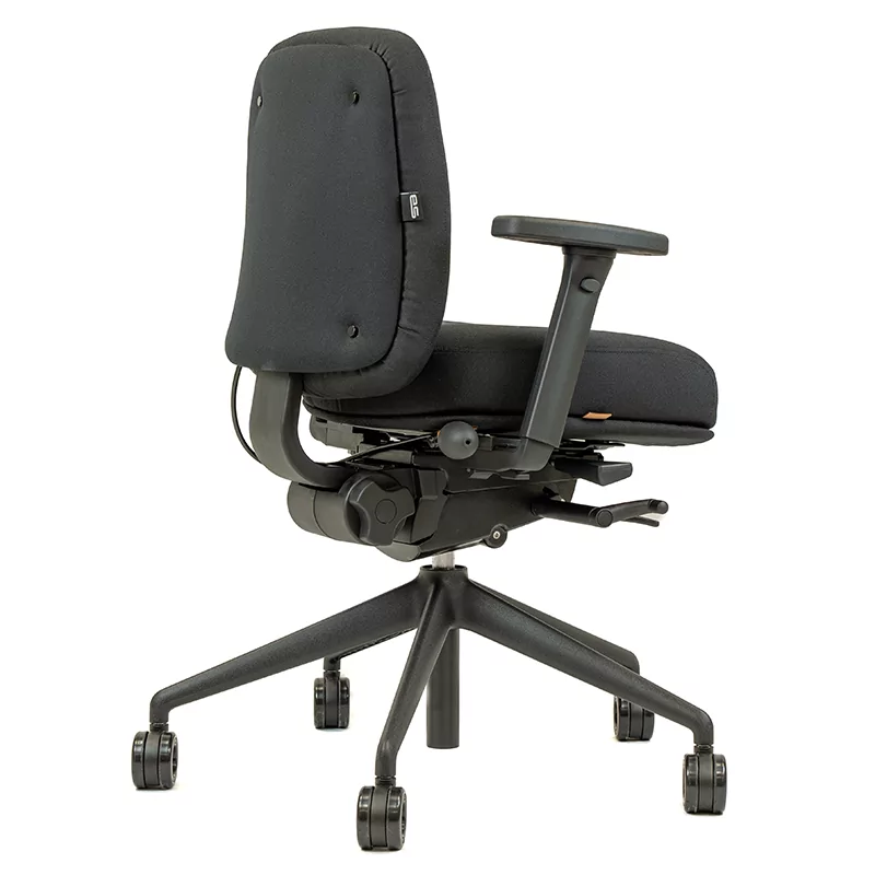 Recorte no cóccix, espuma em vez de molas, sistema de assento pneumático no encosto, mola a gás de alta elevação.