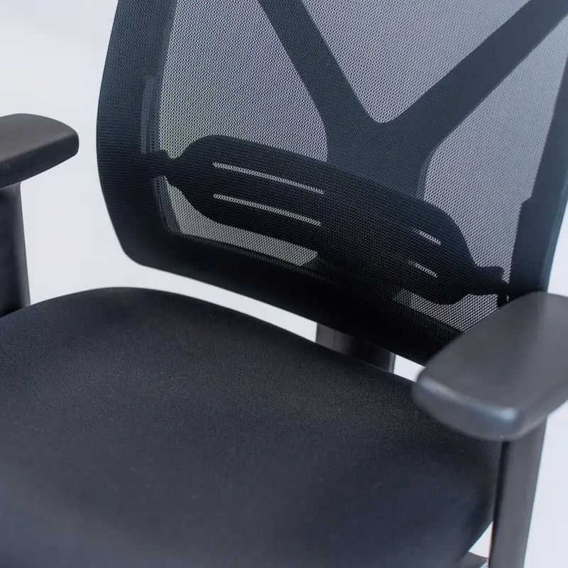 Assento de espuma injetado (prof 434*largura 470 mm), conforto duradouro, tecido de grande porte, malha de volta (586 * 471mm) altura ajustável em 7cm, com suporte lombar altura ajustável.